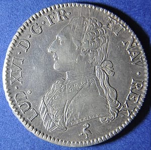 左:1783年銀幣上的路易十六。Source : Jean-Michel Moullec. [CC-BY 2.0] 右:1788年金幣上的路易十六。Source: Jaclyn Nash/National Numismatic Collection, National Museum of American/Wikimedia Commons.